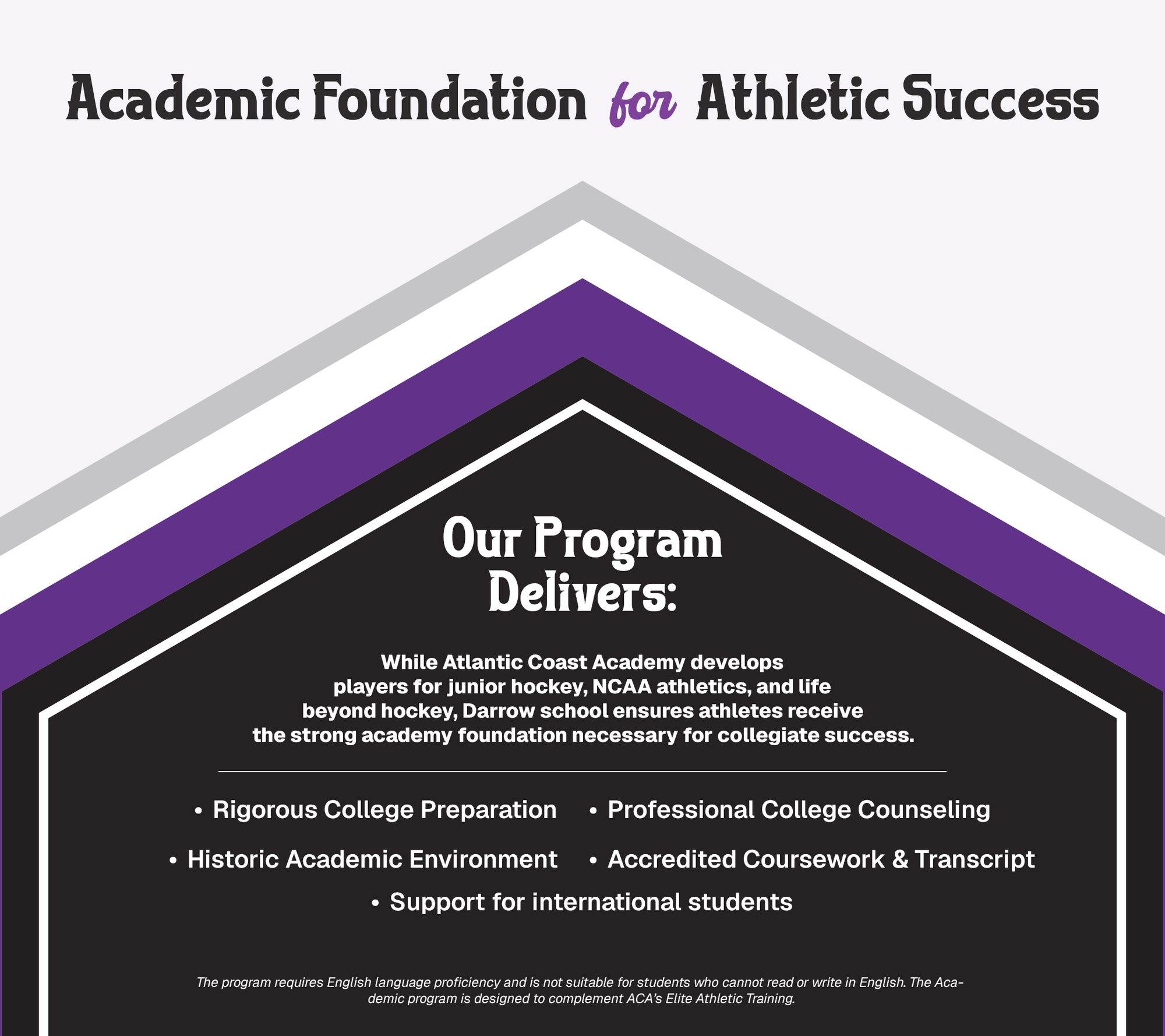 • Full academic support for college-bound athletes